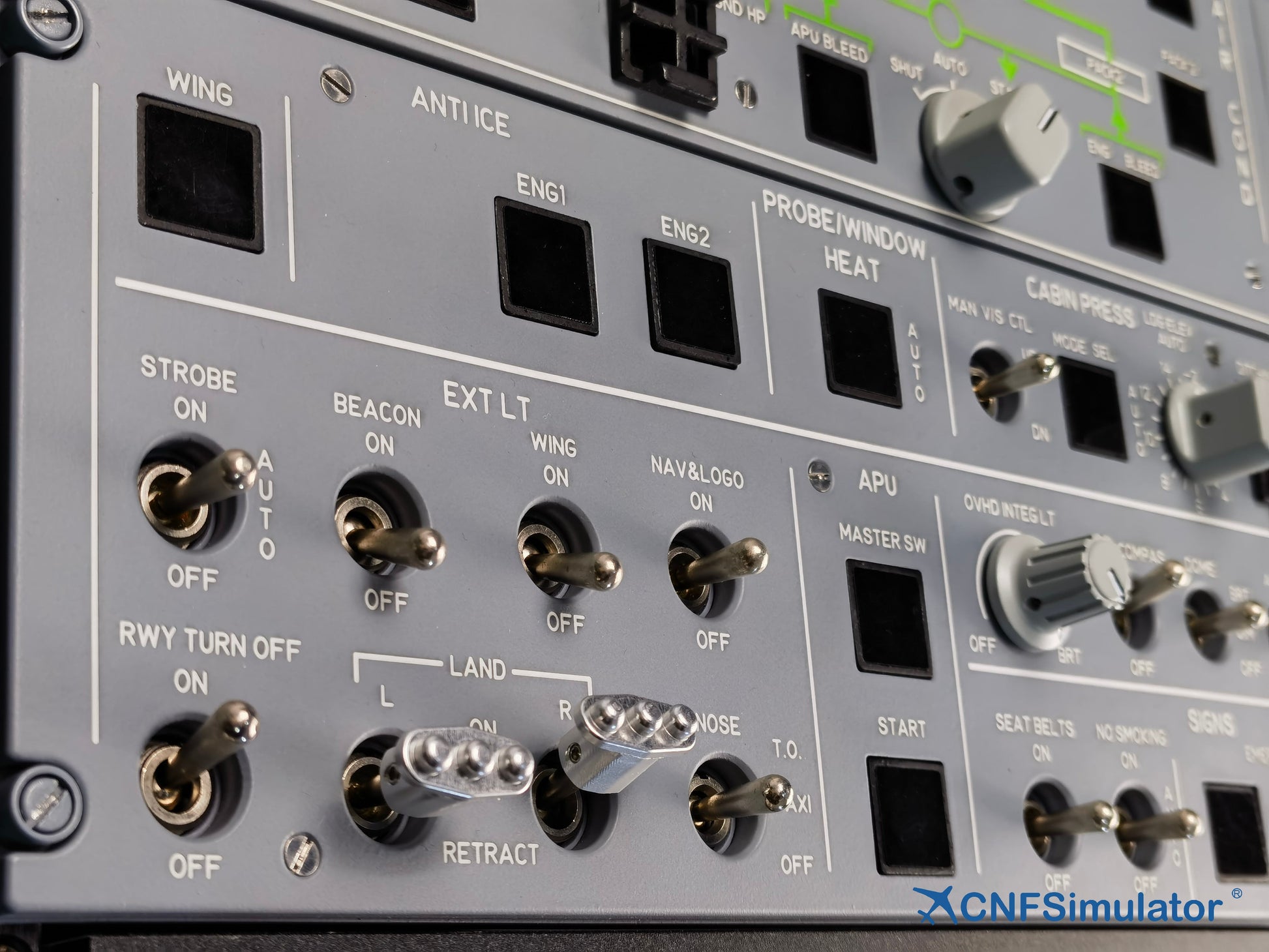 - 1 x LIGHT: EXT LT、APU、INT LT、SIGNS、ANTICE、PROBE/WINDOW HEAT、CABIN PRESS