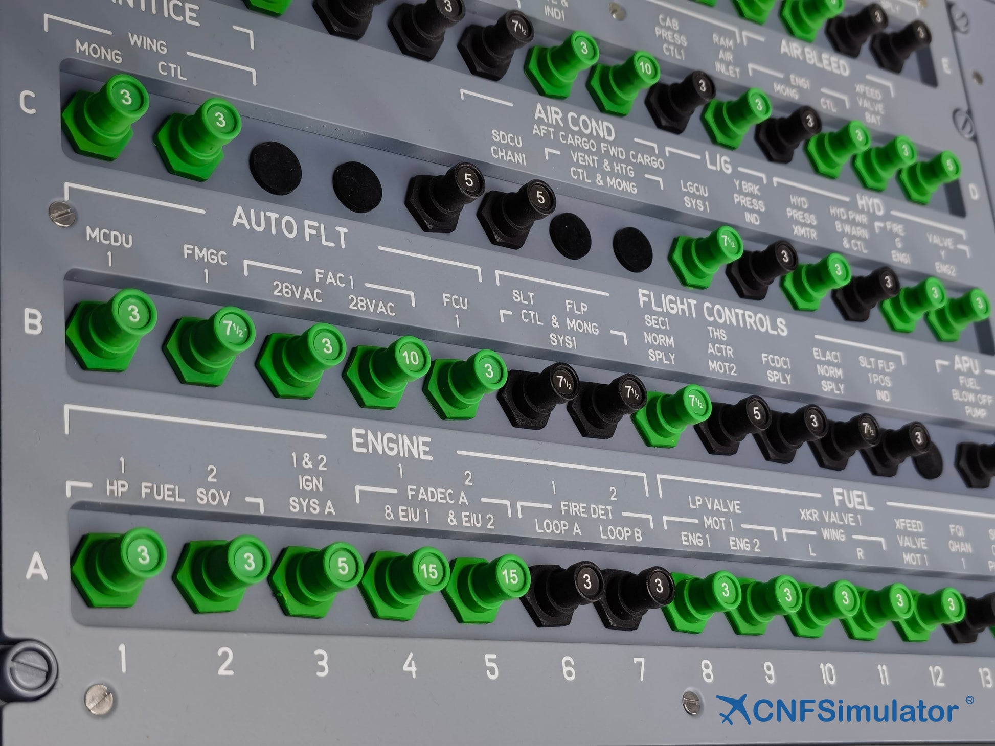 - 1 x RIGHT: FLT CTL、CARGO HEAT、CARGO SMOKE、VENTILATION、ENG、WIPER、RAIN RPLNT