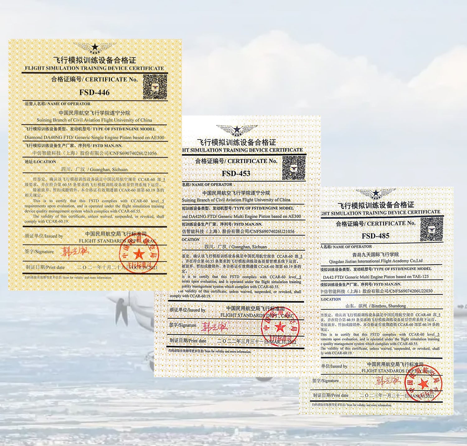 CnTech DA40/DA42 FTD 5 has obtained CAAC FTD Level 5 certification, which is a almost same system with FAA FTD5.What is CAAC FTD? CnTech's Level 5 FTD can cooperate with customers from any country to obtain Level 5 certification from the local Aviation Administration. Please feel free to contact us.
